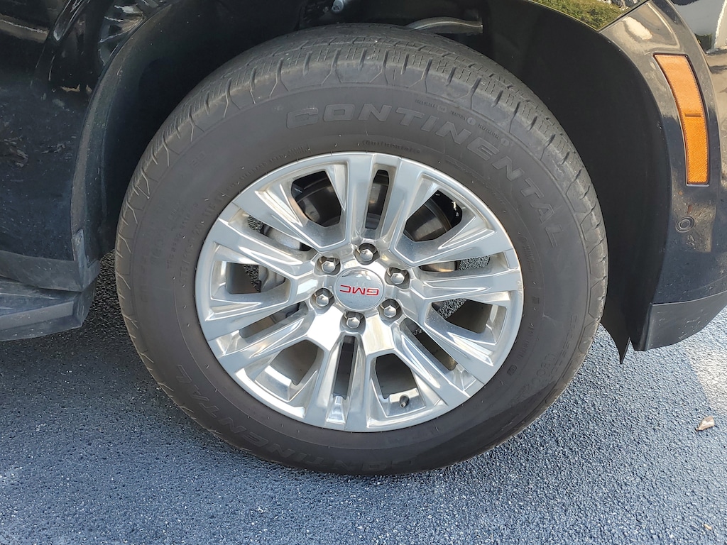 License Plate Front Mounting Package, Preferred Equipment Group 5SA (15 Diagonal Multi-Color Head-Up Display, 4-Way Power Driver Lumbar Seat Adjuster, 4-Way Power Front Passenger Lumbar Seat Adjuster, AutoSense Hands-Free Power Liftgate, Bright Front and Rear Door Sill Plates, Dual Exhaust System, Galvano Bodyside Moldings, Magnetic Ride Control Suspension, Perforated Heather and Ventilated Driver and Front Passenger Seats, Power Release 2nd Row Bucket Seats, Power Tilt and Telescopic Steering Column, and Wheels: 20 x 9 6-Spoke Polished Aluminum), 10 Speakers, 3.23 Rear Axle Ratio, 3rd row seats: split-bench, 4-Wheel Disc Brakes, ABS brakes, Adaptive suspension, Air Conditioning, Alloy wheels, AM/FM radio: SiriusXM with 360L, Apple CarPlay/Android Auto, Audio memory, Auto High-beam Headlights, Auto-dimming door mirrors, Auto-dimming Rear-View mirror, Auto-leveling suspension, Automatic temperature control, Bodyside moldings, Bose 10-Speaker Surround with CenterPoint, Brake assist, Bumpers: body-color, Compass, Delay-off headlights, Driver door bin, Driver vanity mirror, Dual front impact airbags, Dual front side impact airbags, Electronic Stability Control, Emergency communication system: OnStar and GMC connected services capable, Exterior Parking Camera Rear, Four wheel independent suspension, Front anti-roll bar, Front Bucket Seats, Front Center Armrest, Front dual zone A/C, Front fog lights, Front reading lights, Fully automatic headlights, Garage door transmitter, Heads-Up Display, Heated door mirrors, Heated Driver and Front Passenger Seats, Heated front seats, Heated rear seats, Heated steering wheel, Illuminated entry, Low tire pressure warning, Memory seat, Navigation system: GMC Connected Navigation, Occupant sensing airbag, Outside temperature display, Overhead airbag, Overhead console, Panic alarm, Passenger door bin, Passenger vanity mirror, Perforated Leather Seating Surfaces, Power door mirrors, Power driver seat, Power Liftgate, Power passenger seat, Power steering, Power windows, Radio: 16.8 Diagonal Premium GMC Infotainment System, Rain sensing wipers, Rear air conditioning, Rear anti-roll bar, Rear reading lights, Rear window defroster, Rear window wiper, Remote keyless entry, Security system, SiriusXM with 360L, Speed control, Speed-sensing steering, Split folding rear seat, Spoiler, Steering wheel memory, Steering wheel mounted audio controls, Tachometer, Telescoping steering wheel, Tilt steering wheel, Traction control, Trip computer, Turn signal indicator mirrors, Variably intermittent wipers, Ventilated front seats, and Voltmeter.